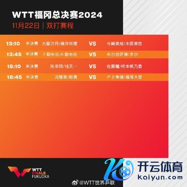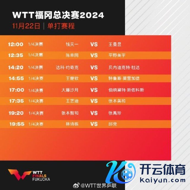 11月22日,WTT福冈总决赛不绝进行。赛程如下↓↓
