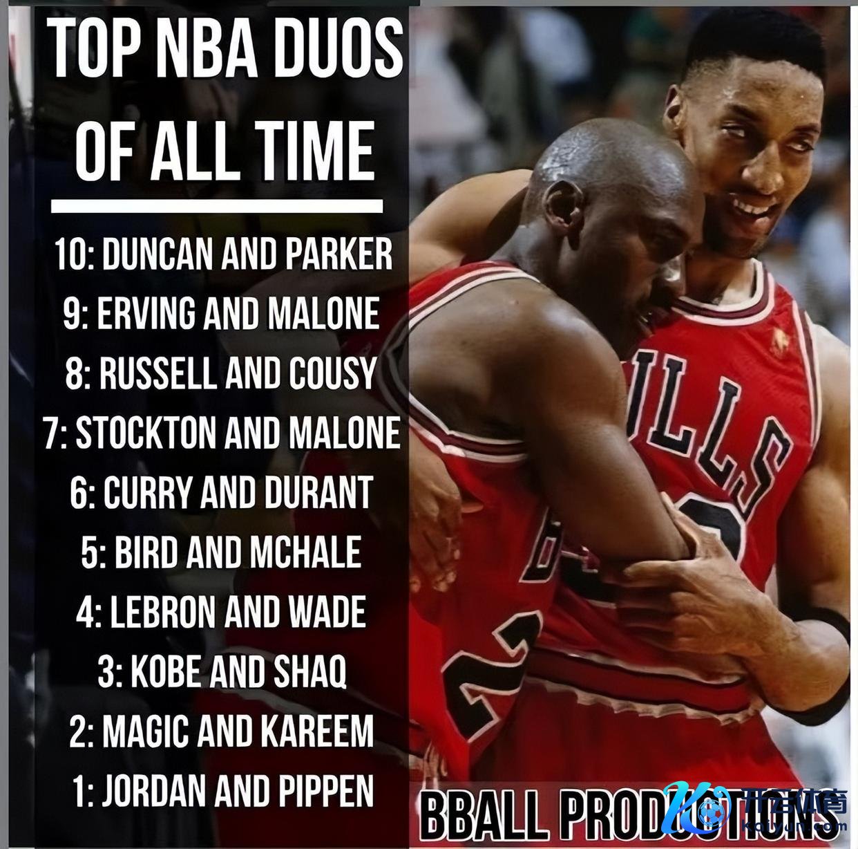 在NBA里念念要作念到单核夺冠不错说吵嘴常难,放眼总共NBA历史上大概作念到单核夺冠的也等于邓肯、诺天王和里克巴里等寥寥几东谈主,一般来说念念要拿下总冠军皆需要领有顶级的双核,说到双核了,在NBA历史上有许多经典的双东谈主组,近日好意思媒亦然重排了NBA史上最佳的10对双东谈主组,咱们沿途来望望合理吗?