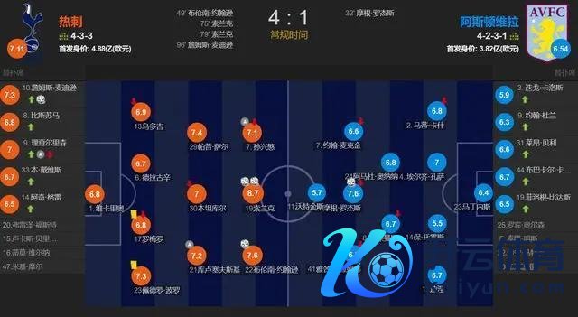 临了,热刺以4比1的比分降服了阿斯顿维拉。