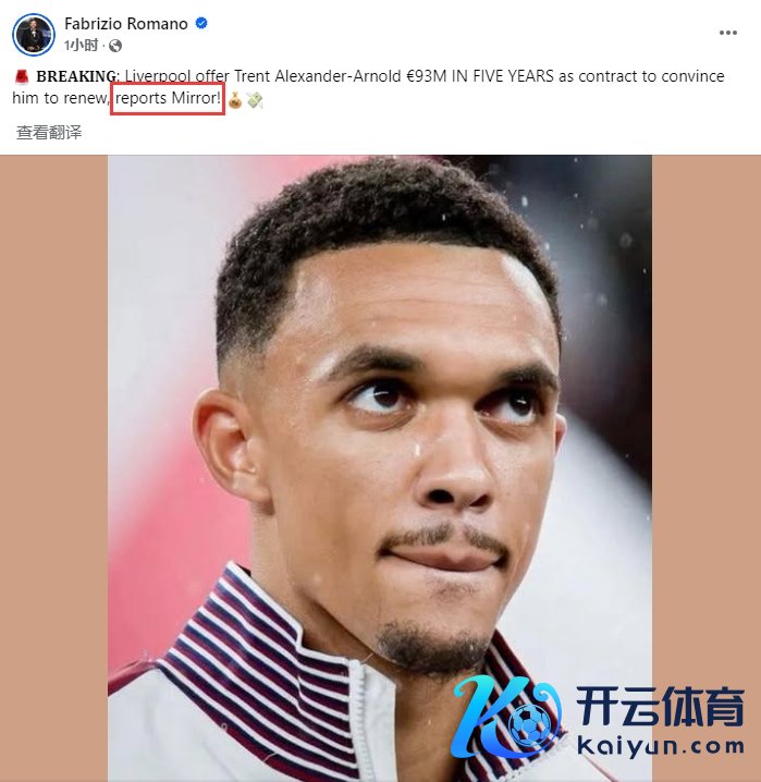 01月05日讯 罗马诺脸书征引镜报音书,利物浦给阿诺德提供5年9300万欧的续约契约。