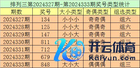 摆设三第2024333期总结:奖号848,奇偶比0:3体育录像/图片,大小比2:1,和值20,类型:组三。