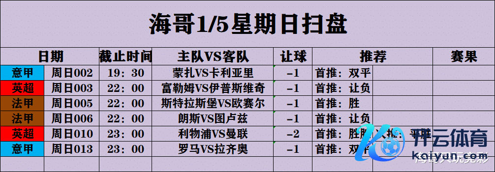 回归:利物浦现在名次联赛第一,气象正佳,且领有主场之利,球队本赛季英超冠军基本是稳了,比拟上赛季前几名的积分咬的很紧,这个赛季显得更减弱。