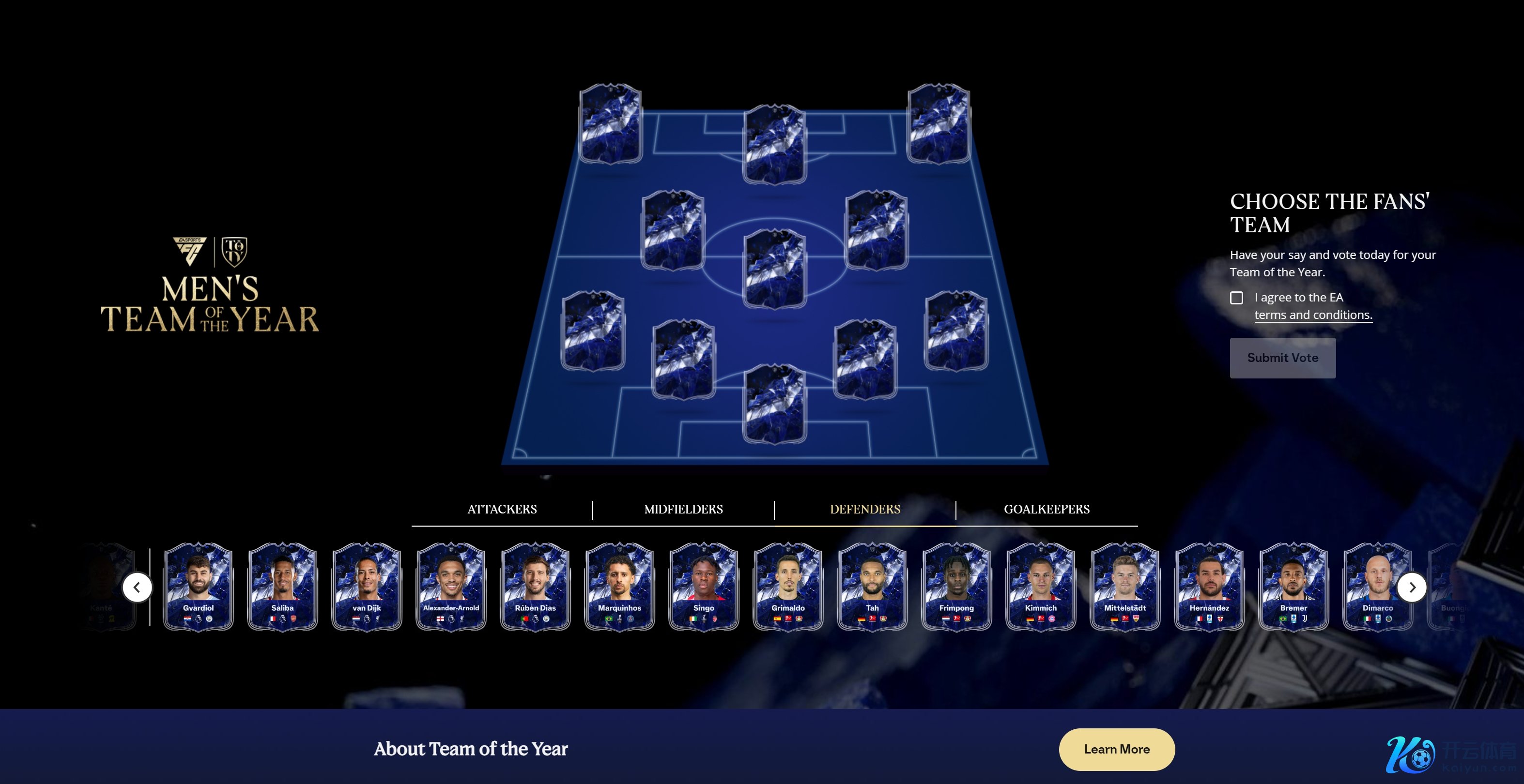 顶尖提名者们,他们王人在争夺本年首发11东说念主的一个席位。最终的年度最好球队声威将在投票截止后不久公布,并将相配发布TOTY球员卡到FC25游戏中,以庆祝每一位粉丝最爱的球员的地位。