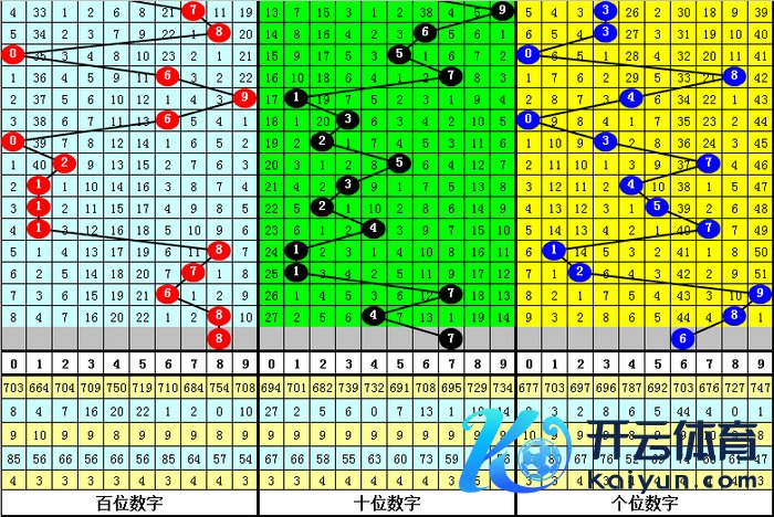 第二位3-6之间的中号开出13个,现在遗漏0期,其中号码6出现1次,现在遗漏13期;号码5出现3次,现在遗漏7期;号码3出现4次,现在遗漏6期;号码4出现5次,现在遗漏0期。